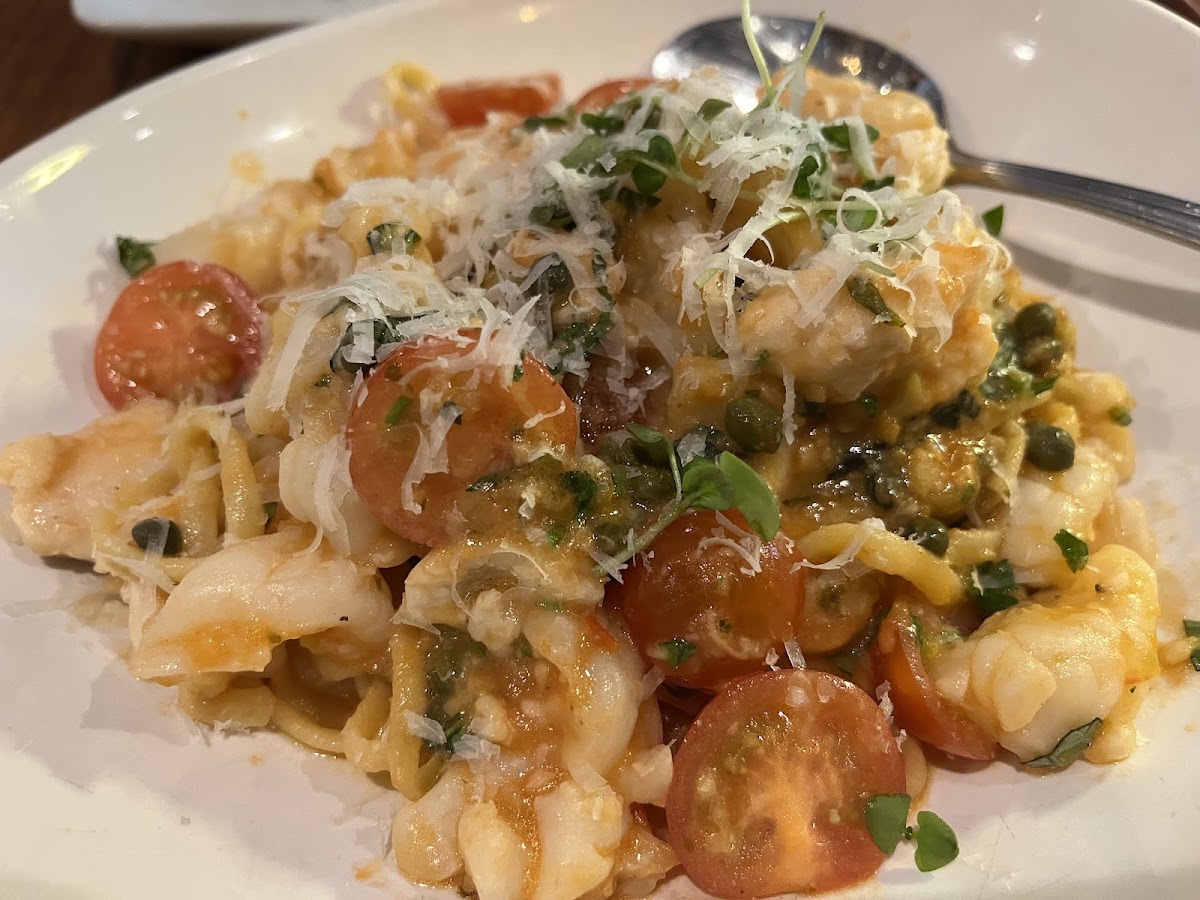 We went for lunch & I was a bit disappointed that they have a separate lunch & dinner menu. I wanted the crab arancini but it wasn't on the lunch menu so I asked the server & she offered to check with the kitchen & they obliged. I'm so glad I asked because it was delicious. My daughter had the prosciutto & burrata panini & it was a nice balance of all the ingredients. The carbonara di gamberi was good...pasta was al dente with a good bite. Service was great. If I lived closer I would visit often.