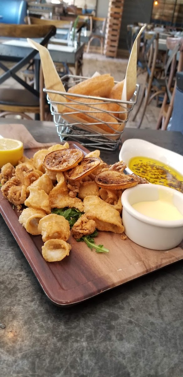 Overall, we had a wonderful experience! 4.5 stars (We thought happy hour ended at 6, but it actually ends at 5:30pm.) We were seated outside since we brought our dog (yay for dog-friendly!), and service was great. Richard was our server and he truly made it an enjoyable experience. We ordered: - Calamari - Cesar Salad - Strawberry Basil Mocktail - Campanelle di Guiliana - Gnocchi con Tartufo - (Free dessert) Cannoli Cheesecake Everything was excellent! The only thing we didn't quite enjoy was the gnocchi con tartufo which we felt was under-seasoned and overall underwhelming in terms of flavor. However, everything else was really enjoyable, especially the calamari which tasted fresh, crispy, and tender! And the campanelle di guiliana was amazing -- definitely our favorite dish of the night. The pasta was perfectly al dente and the shape of the pasta soaked up the delicious Parmesan cream sauce. The chicken was tender and the crispy pancetta made for a nice contrast in texture. We will definitely be back!